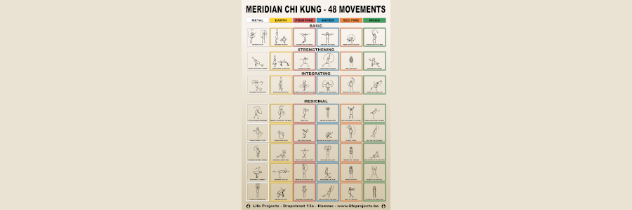 Poster met de 48 Meridiaan Chi Kung bewegingen